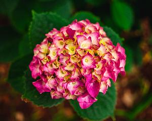 {Digital: Canon 5D Mark ii} Color image of pink and yellow hydrangea